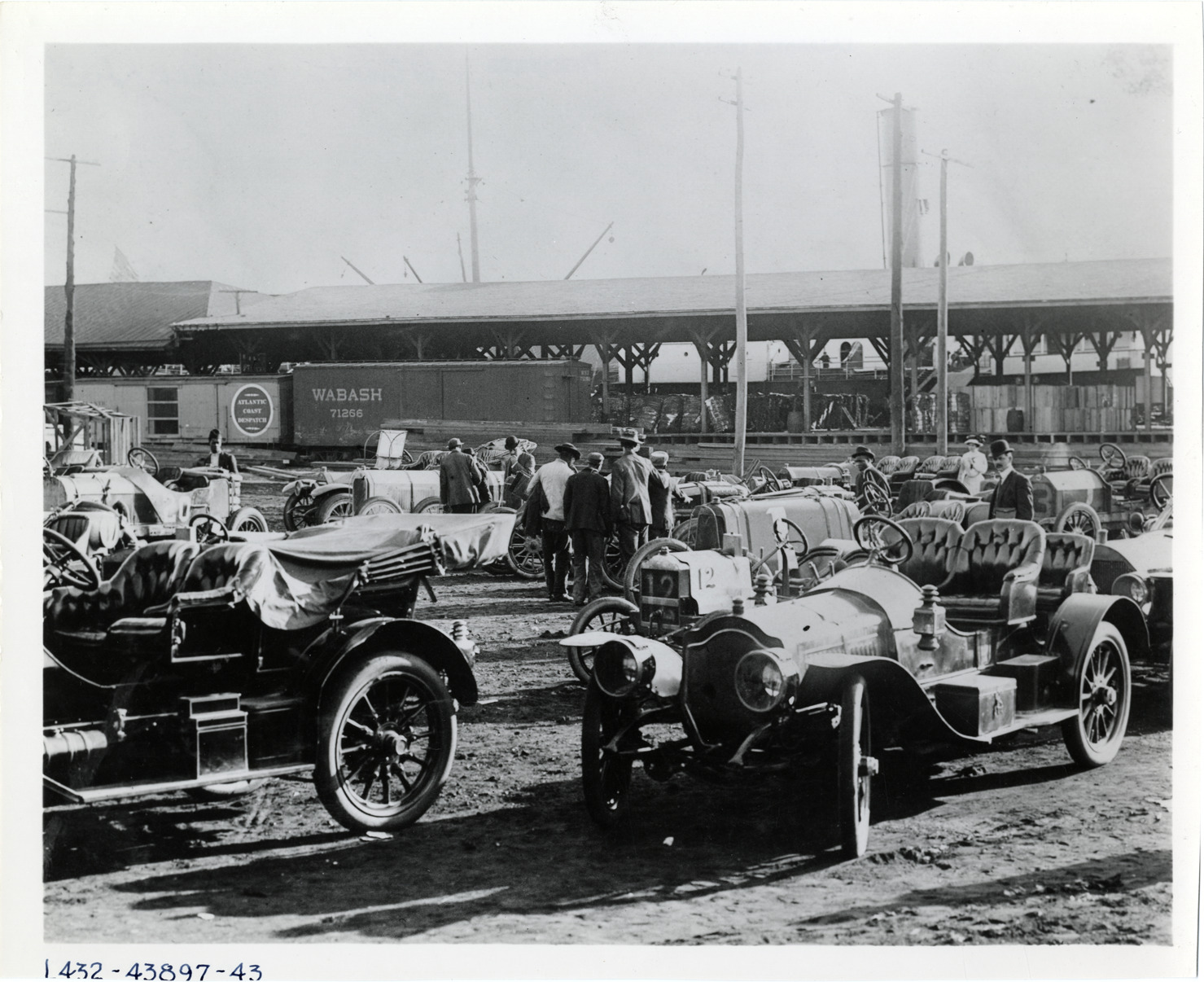 Favorite this☆ Automobiles parked in front of railroad depot Description: View of men looking at cars parked in front of railroad cars and train station. Handwritten on back: "Events--Unidentified." Details Resource ID: na006821 Subject: Automobiles Railroad cars Photographic prints Date Issued: Unknown year Format: 1 photographic print ; 8 x 10 in. Member of: National Automotive History Collection Lazarnick Collection Filing Location: Events--Unidentified Rights: Physical rights are retained by DPL. Copyright is retained in accordance with U.S. copyright laws.