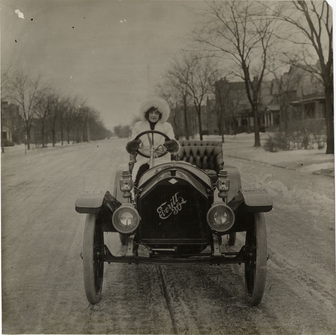 Favorite this☆ Annette Kellerman driving Everitt "30" automobile Description: View of Annette Kellerman, wearing fur coat and hat, driving Everitt "30" automobile on snow-covered street. Handwritten on back: "Everitt 30. Annette Kellerman." Details Resource ID: na006822 Subject: Metzger Motor Car Company Kellerman, Annette, 1888-1975 Automobiles Women automobile drivers Photographic prints Date Issued: Unknown year Format: 1 photographic print ; 7.75 x 7.5 in. Member of: National Automotive History Collection Lazarnick Collection Filing Location: Everitt Negative Number: Negative #13,785 F-2 Rights: Physical rights are retained by DPL. Copyright is retained in accordance with U.S. copyright laws.