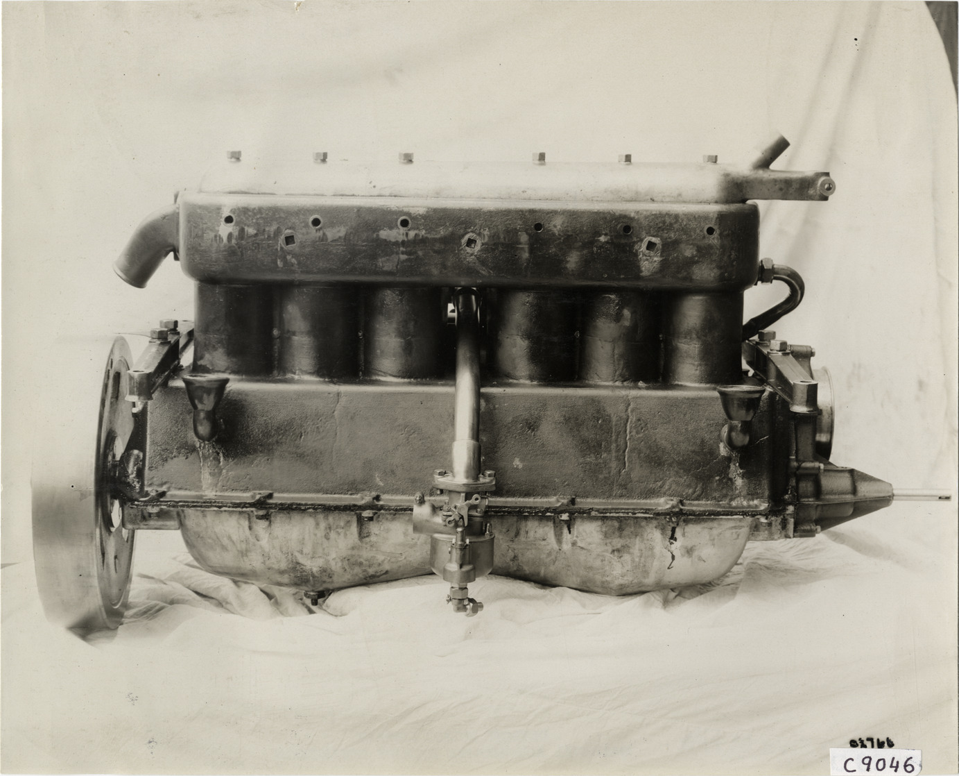 View of engine block for 1912 Everitt car. Stamped on back: "Spooner & Wells, Inc., photographers, 1231 Woodward Ave., Detroit, Mich., telephone North 1745." Handwritten on back: "Everitt, 1912."