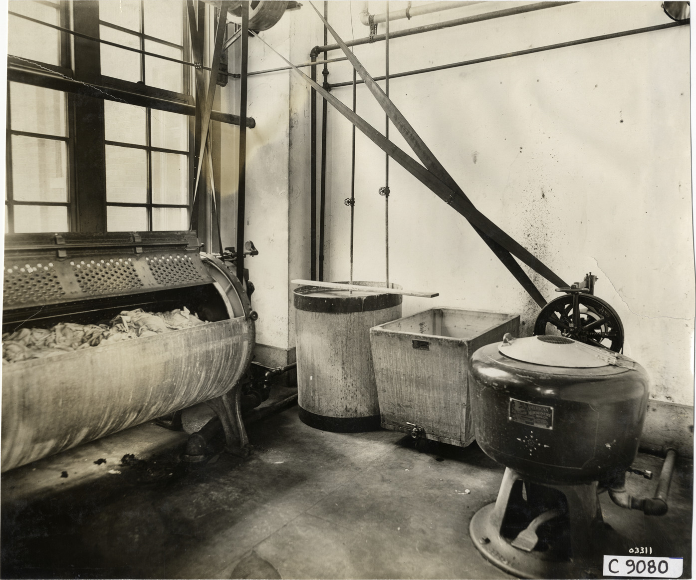 Favorite this☆ Interior of American Laundry Machinery Company factory Description: View of interior of American Laundry Machinery Company factory. Handwritten on back: "Factories--American Laundry Machinery Co., 1911." Details Resource ID: na006915 Subject: American Laundry Machinery Company Laundry machinery Factories Photographic prints Date Issued: 1911 Format: 1 photographic print ; 7.75 x 9.25 in. Member of: National Automotive History Collection Lazarnick Collection Filing Location: Factories--American Laundry Machinery Co. Negative Number: Negative #C9080 Rights: Physical rights are retained by DPL. Copyright is retained in accordance with U.S. copyright laws.