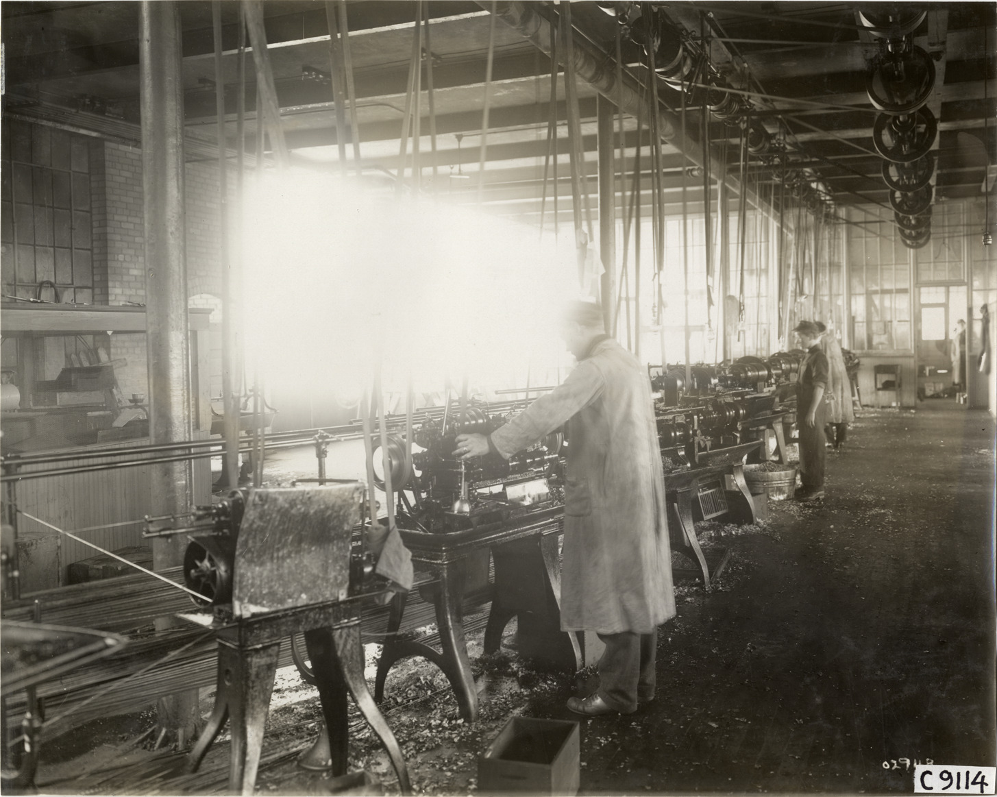 Favorite this☆ Men operating machines, Bower Roller Bearing Company factory Description: View of men operating machines at Bower Roller Bearing Company factory. Handwritten on back: "Factories--Bower Roller Bearing Co., 1911." Details Resource ID: na006952 Subject: Factories--Michigan--Detroit Machinery--Michigan--Detroit Bearings industry--Michigan--Detroit--Employees Photographic prints Date Issued: 1911 Format: 1 photographic print ; 7.75 x 9.75 in. Member of: National Automotive History Collection Lazarnick Collection Filing Location: Factories--Bower Roller Bearing Co. Negative Number: Negative #C9114 Rights: Physical rights are retained by DPL. Copyright is retained in accordance with U.S. copyright laws.