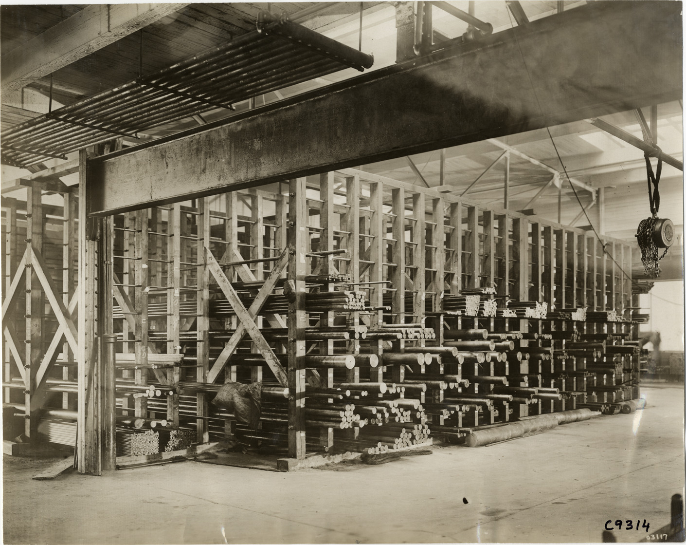 Favorite this☆ Steel rods, Pittsburgh Shafting Company factory Description: View of steel rods stacked in storage unit at Pittsburgh Shafting Company factory. Handwritten on back: "Factories--Pittsburgh Shafting Co., 1911." Details Resource ID: na006964 Subject: Factories--Michigan--Detroit Steel industry and trade--Michigan--Detroit Photographic prints Date Issued: 1911 Format: 1 photographic print ; 7.5 x 9.5 in. Member of: National Automotive History Collection Lazarnick Collection Filing Location: Factories--Pittsburgh Shafting Co. Negative Number: Negative #C9314 Rights: Physical rights are retained by DPL. Copyright is retained in accordance with U.S. copyright laws.