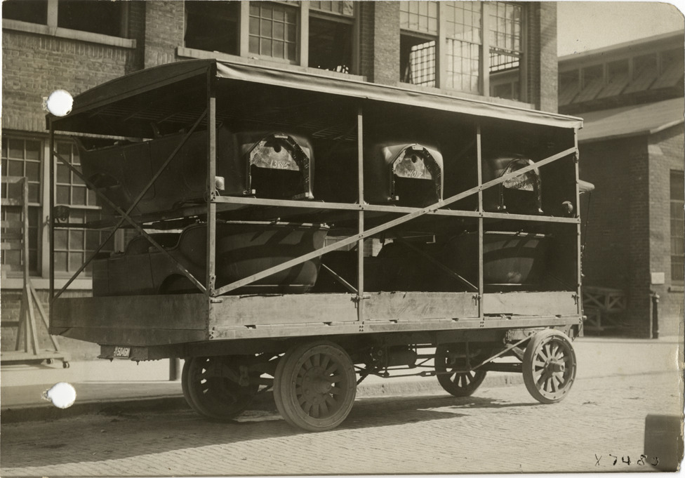 Truck carrying automobile parts at Cadillac Motor Car Company factory