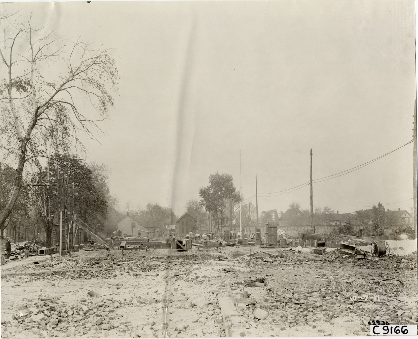 Favorite this☆ Site of Ford Motor Company factory addition Description: View of site for Ford Motor Company factory addition. Rubble and other debris in foreground; construction workers and houses in background. Handwritten on back: "Factories--Ford Motor Co., 1911." Details Resource ID: na007052 Subject: Ford Motor Company Automobile factories--Michigan--Highland Park--Design and construction Building sites--Michigan--Highland Park Photographic prints Date Issued: 1911 Format: 1 photographic print ; 7.75 x 9.5 in. Member of: National Automotive History Collection Lazarnick Collection Filing Location: Factories--Ford Motor Co. #1 Negative Number: Negative #C9166 Rights: Physical rights are retained by DPL. Copyright is retained in accordance with U.S. copyright laws.