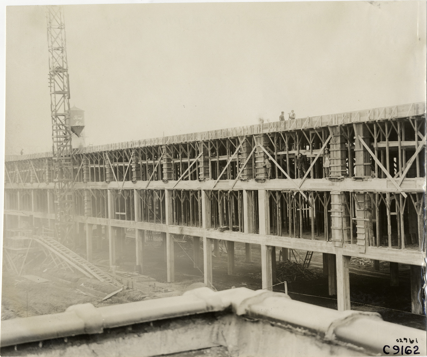 Favorite this☆ Ford Motor Company factory addition under construction Description: View of Ford Motor Company factory addition during construction; construction workers stand on building framework. Handwritten on back: "Factories--Ford Motor Co., 1911." Details Resource ID: na007069 Subject: Ford Motor Company Automobile factories--Michigan--Highland Park--Design and construction Buildings--Additions--Michigan--Highland Park--Design and construction Structural frames Photographic prints Date Issued: 1911 Format: 1 photographic print ; 7.75 x 9.25 in. Member of: National Automotive History Collection Lazarnick Collection Filing Location: Factories--Ford Motor Co. #1 Negative Number: Negative #C9162 Rights: Physical rights are retained by DPL. Copyright is retained in accordance with U.S. copyright laws.