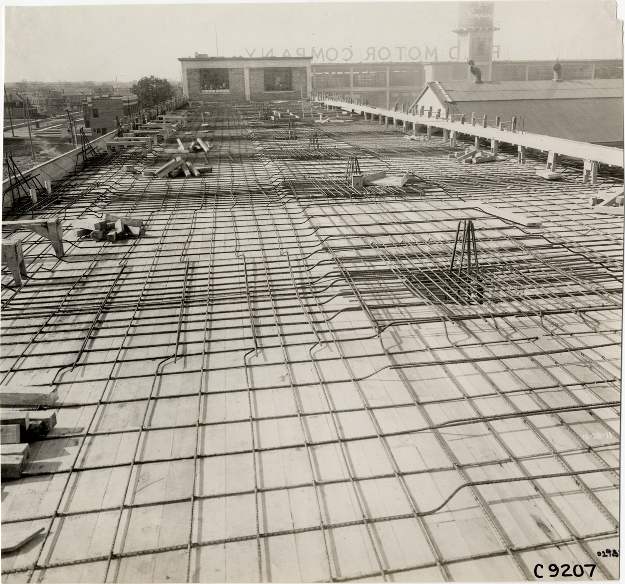 Favorite this☆ Rebar grid, Ford Motor Company factory addition under construction Description: View of rebar grid on Ford Motor Company factory addition during construction. Handwritten on back: "Factories--Ford Motor Co., 1911." Details Resource ID: na007088 Subject: Ford Motor Company Automobile factories--Michigan--Highland Park--Design and construction Buildings--Additions--Michigan--Highland Park--Design and construction Reinforcing bars Photographic prints Date Issued: 1911 Format: 1 photographic print ; 8 x 8.5 in. Member of: National Automotive History Collection Lazarnick Collection Filing Location: Factories--Ford Motor Co. #2 Negative Number: Negative #C9207 Rights: Physical rights are retained by DPL. Copyright is retained in accordance with U.S. copyright laws.