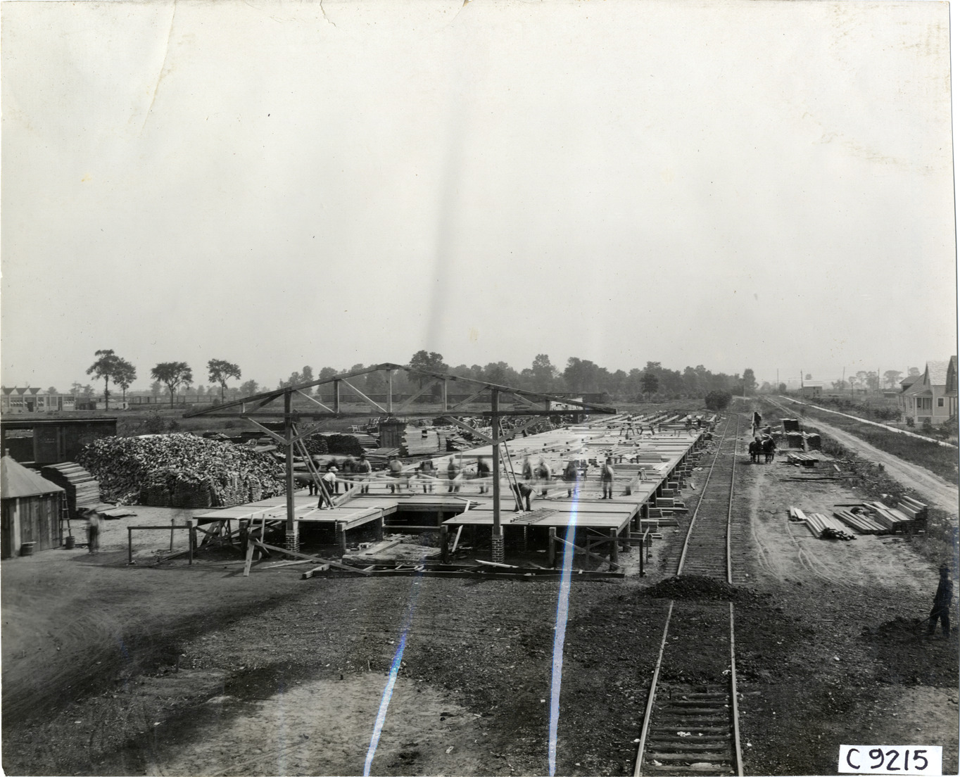Favorite this☆ Ford Motor Company factory addition under construction Description: View of workers constructing Ford Motor Company factory addition; railroad tracks on right. Handwritten on back: "Factories--Ford Motor Co., 1911." Details Resource ID: na007102 Subject: Ford Motor Company Automobile factories--Michigan--Highland Park--Design and construction Buildings--Additions--Michigan--Highland Park--Design and construction Photographic prints Date Issued: 1911 Format: 1 photographic print ; 7.5 x 9 in. Member of: National Automotive History Collection Lazarnick Collection Filing Location: Factories--Ford Motor Co. #3 Negative Number: Negative #C9215 Rights: Physical rights are retained by DPL. Copyright is retained in accordance with U.S. copyright laws.