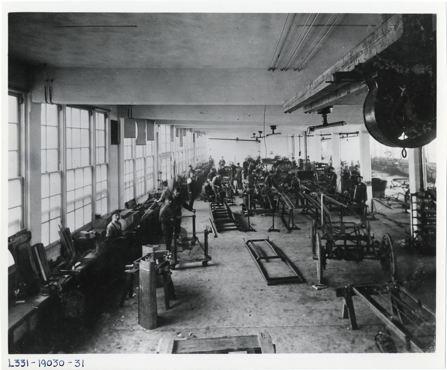 Favorite this☆ Workers in frame assembly room, Garford Company factory Description: View of workers in frame assembly room at Garford Company factory. Handwritten on back: "Factories--Garford. Frame assembly dept., 1907." Details Resource ID: na007125 Subject: Garford Company Automobile factories Automobiles--Chassis Photographic prints Date Issued: 1907 Format: 1 photographic print ; 8 x 9.75 in. Member of: National Automotive History Collection Lazarnick Collection Filing Location: Factories--Garford Rights: Physical rights are retained by DPL. Copyright is retained in accordance with U.S. copyright laws.