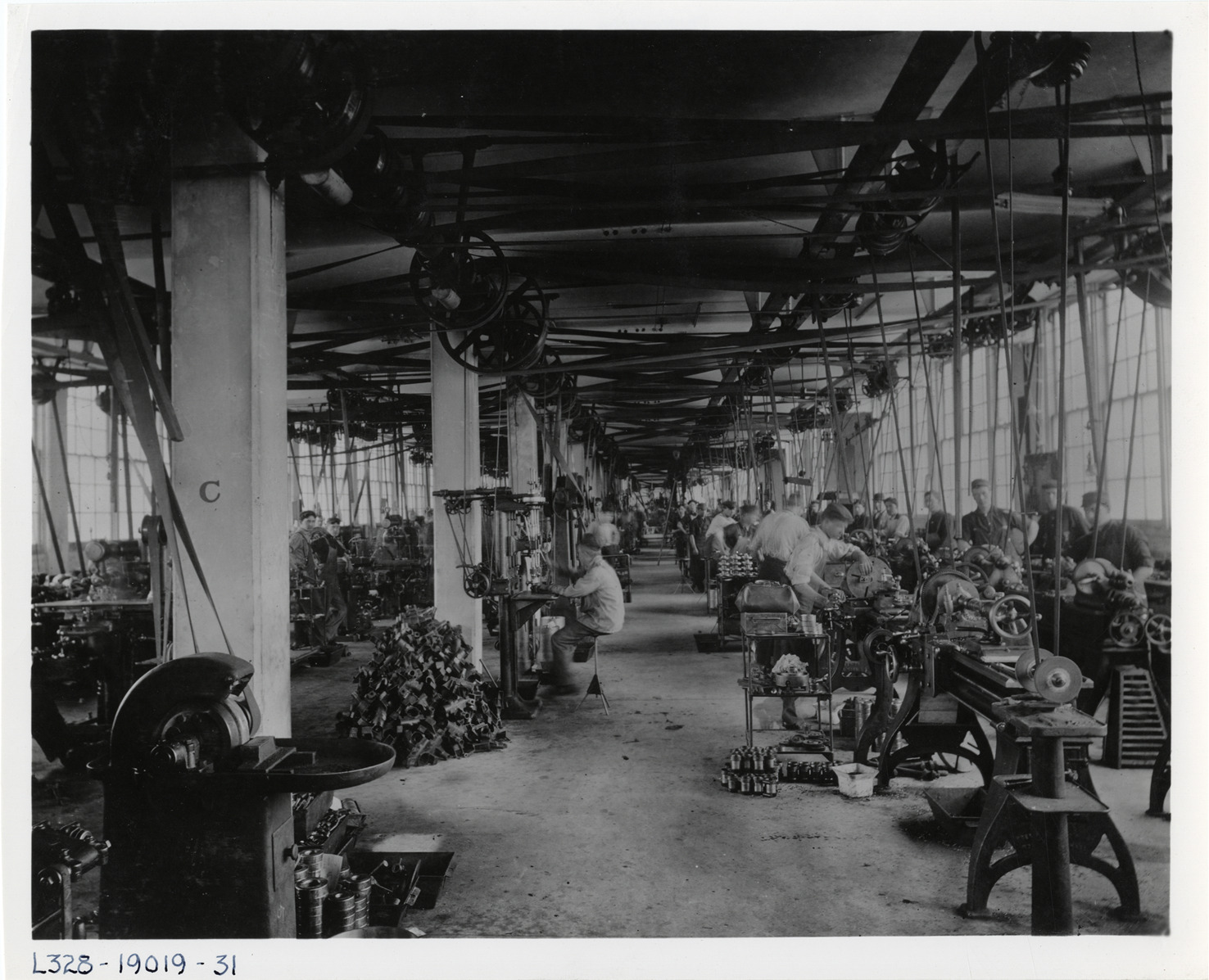Workers in machine department, Garford Company factory