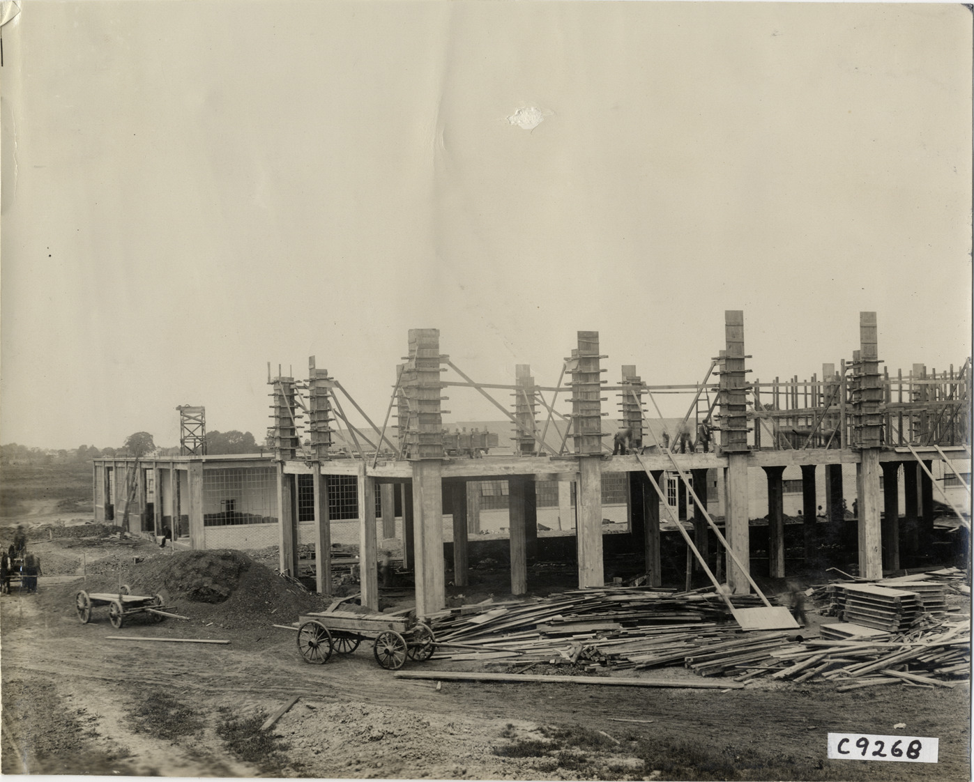 Favorite this☆ Lozier Motor Company factory under construction Description: View of Lozier Motor Company factory during construction, showing building framework. Lumber and wooden carts in front of building. Handwritten on back: "Factories--Lozier, 1910." Details Resource ID: na007195 Subject: Lozier Motor Company Automobile factories--Design and construction Structural frames Photographic prints Date Issued: 1910 Format: 1 photographic print mounted on fabric ; 7.5 x 9.5 in. Member of: National Automotive History Collection Lazarnick Collection Filing Location: Factories--Lozier Negative Number: Negative #C9268 Rights: Physical rights are retained by DPL. Copyright is retained in accordance with U.S. copyright laws.