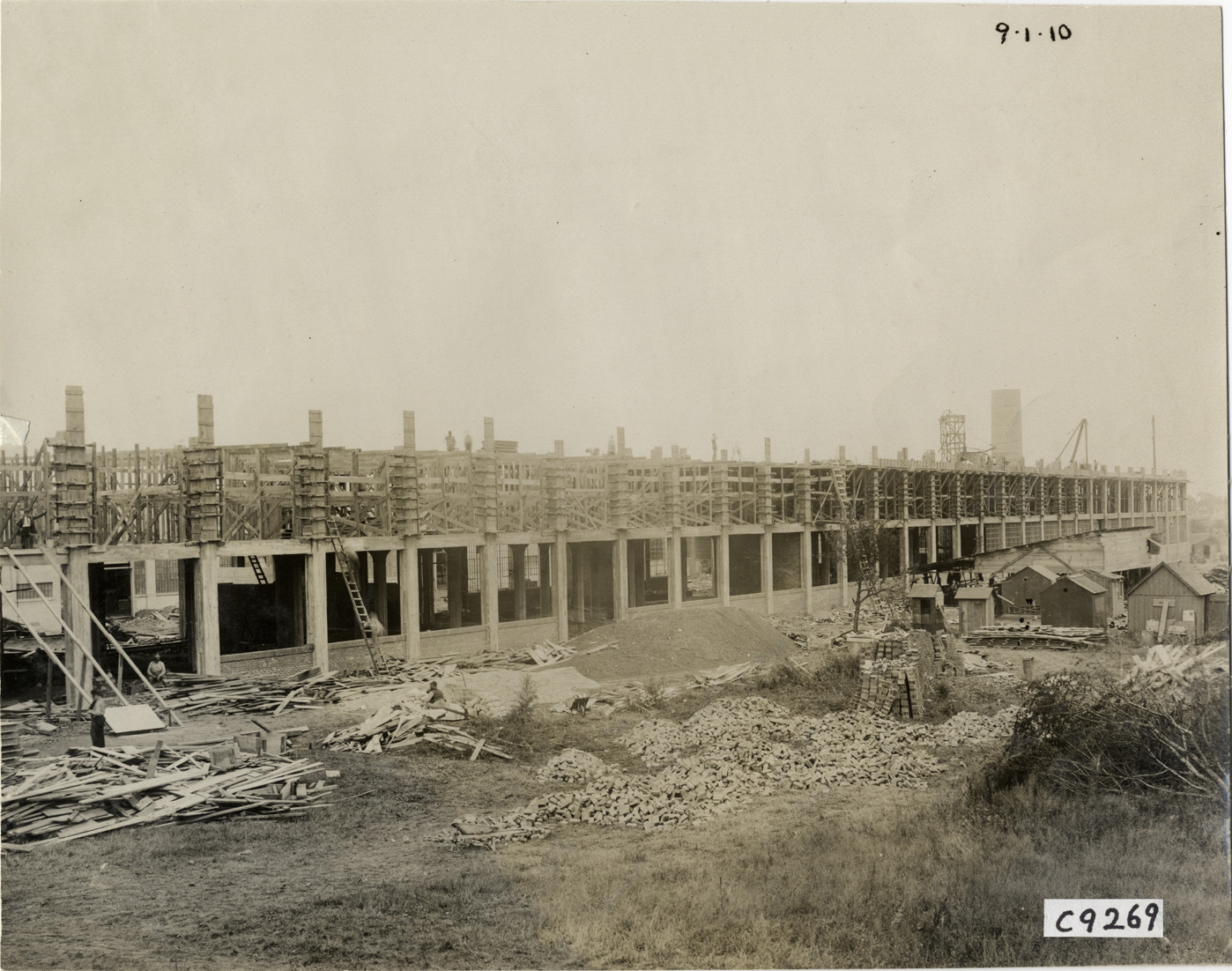 Favorite this☆ Lozier Motor Company factory under construction Description: View of Lozier Motor Company factory during construction, showing building framework. Construction materials and debris in foreground; outbuildings in background. Handwritten on front: "9-1-10." Handwritten on back: "Factories--Lozier, 1910." Details Resource ID: na007196 Subject: Lozier Motor Company Automobile factories--Design and construction Structural frames Photographic prints Date Issued: 1910-09-01 Format: 1 photographic print mounted on fabric ; 7.5 x 9.5 in. Member of: National Automotive History Collection Lazarnick Collection Filing Location: Factories--Lozier Negative Number: Negative #C9269 Rights: Physical rights are retained by DPL. Copyright is retained in accordance with U.S. copyright laws.