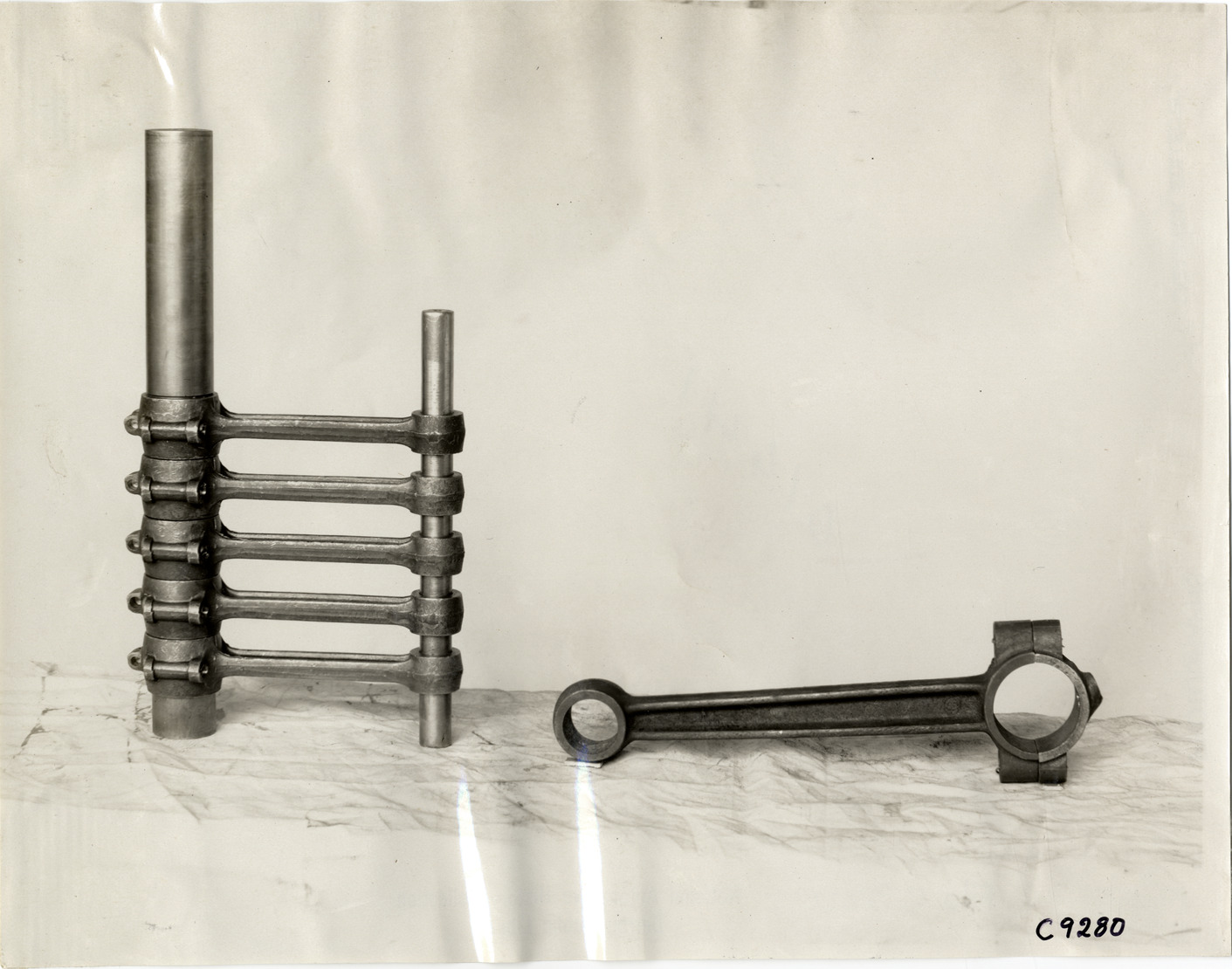Favorite this☆ Connecting rods, Massnick-Phipps Manufacturing Company Description: View of piston rods manufactured by Massnick-Phipps Manufacturing Company. Handwritten on back: "Factories--Massnick-Phipps Mfg. Co., 1910. Connecting rods." Details Resource ID: na007208 Subject: Automobiles--Motors--Pistons and piston rings Photographic prints Date Issued: 1910 Format: 1 photographic print ; 7.5 x 9.5 in. Member of: National Automotive History Collection Lazarnick Collection Filing Location: Factories--Massnick-Phipps Mfg. Co. Negative Number: Negative #C9280 Rights: Physical rights are retained by DPL. Copyright is retained in accordance with U.S. copyright laws.