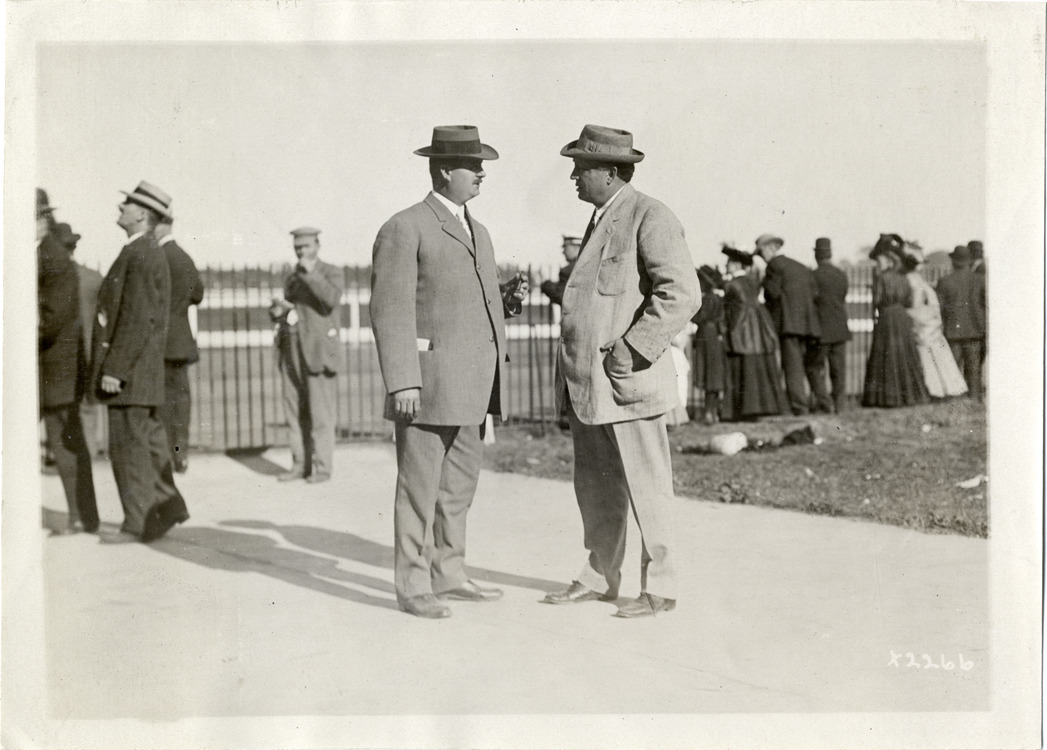 Favorite this☆ Thomas E. Newton conversing with unidentified man, Michigan State Fair Description: Portrait of Thomas E. Newton, president of the Michigan State Fair, conversing with unidentified man. Handwritten on back: "Fairs--Michigan State Fair, 1910." Details Resource ID: na007375 Subject: Michigan State Fair Photographic prints Date Issued: 1910 Format: 1 photographic print ; 5 x 7 in. Member of: National Automotive History Collection Lazarnick Collection Filing Location: Fairs--Michigan State Fair, 1910 #2 Rights: Physical rights are retained by DPL. Copyright is retained in accordance with U.S. copyright laws.