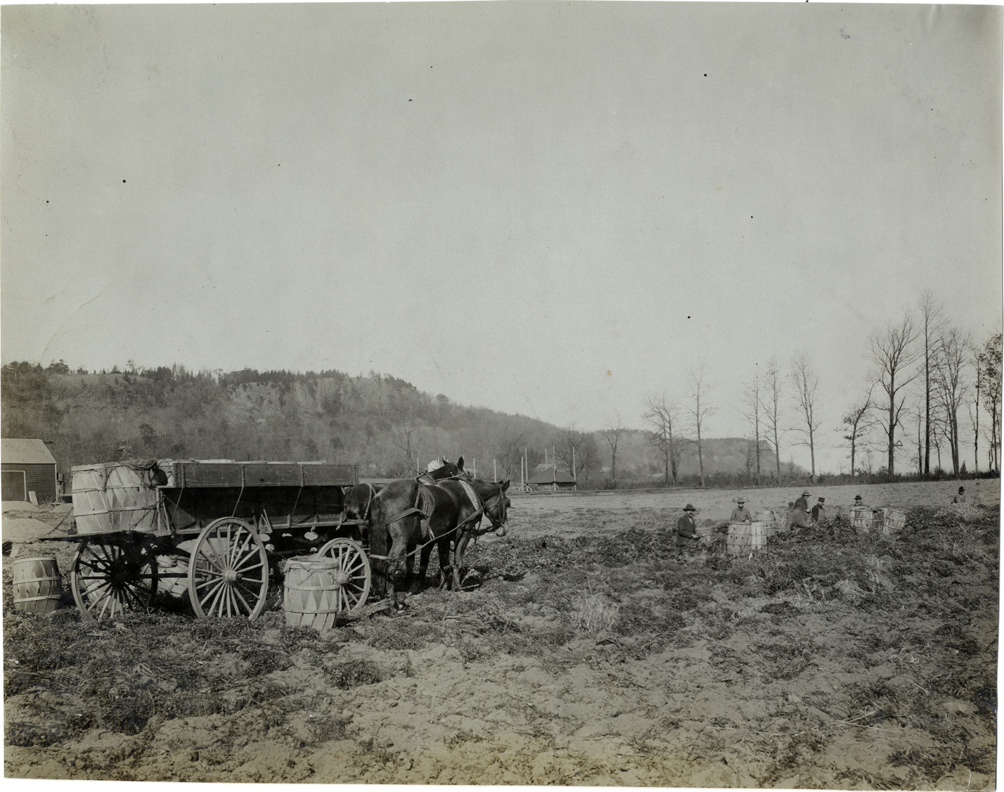 Favorite this☆ Men harvesting crops on farm Description: View of men harvesting crops in farm field; horse-drawn wagon with barrels in foreground. Stamped on back: "Photo by F. Ed. Spooner, 1536 B'way, telephone 6536-38th St., New York, N.Y." Handwritten on back: "Farms & farming, 1906." Details Resource ID: na007398 Creator: Spooner, F. Ed. Subject: Horse-drawn vehicles Agricultural laborers Harvesting Farms Photographers--New York (State)--New York Photographic prints Date Issued: 1906 Format: 1 photographic print ; 7.5 x 9.5 in. Member of: National Automotive History Collection Lazarnick Collection Filing Location: Farms and farming Rights: Physical rights are retained by DPL. Copyright is retained in accordance with U.S. copyright laws.