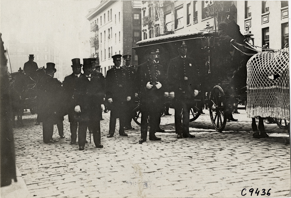 Policemen, mourners and hearse, funeral of Joseph Petrosino