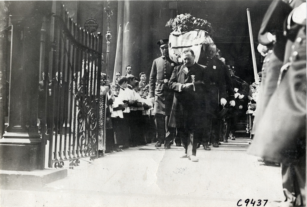 Favorite this☆ Pallbears carrying casket, funeral of Joseph Petrosino Description: View of pallbears carrying coffin at funeral of New York policeman Joseph Petrosino. Handwritten on back: "Funerals, 1909. Funeral of Joseph Petrosino." Details Resource ID: na007548 Subject: Petrosino, Joe, 1860-1909--Death and burial Coffins--New York (State)--New York Funeral rites and ceremonies--New York (State)--New York Photographic prints Date Issued: 1909-04 Format: 1 photographic print ; 4.75 x 6.75 in. Member of: National Automotive History Collection Lazarnick Collection Filing Location: Funerals, 1909 Negative Number: Negative #C9437 Rights: Physical rights are retained by DPL. Copyright is retained in accordance with U.S. copyright laws.