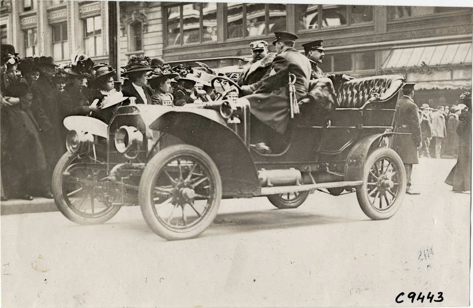 Inspector McCloskey in automobile, funeral of Joseph Petrosino