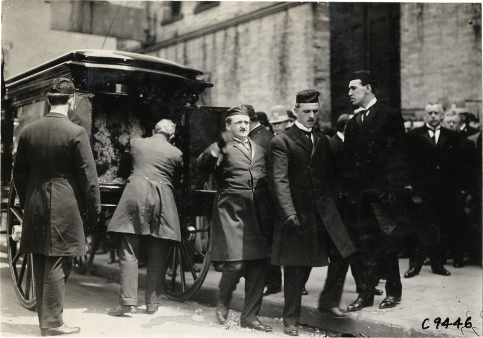 Favorite this☆ Pallbearers and hearse at funeral Description: View of pallbearers and hearse at funeral. Stamped on back: "Spooner & Wells, Inc., photographers, telephones 3472-3473 Columbus, 1931 Broadway, New York." Handwritten on back: "Funerals, 1909." Details Resource ID: na007557 Creator: Spooner & Wells Subject: Funeral rites and ceremonies Hearses (Vehicles) Photographers--New York (State)--New York Photographic prints Date Issued: 1909 Format: 1 photographic print ; 4.75 x 6.75 in. Member of: National Automotive History Collection Lazarnick Collection Filing Location: Funerals, 1909 Negative Number: Negative #C9446 Rights: Physical rights are retained by DPL. Copyright is retained in accordance with U.S. copyright laws.