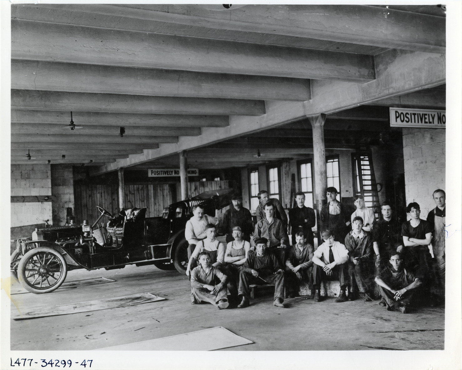 Favorite this☆ Mechanics in garage Description: View of mechanics in garage; car in background. Typed on back: "Car in garage, mechanics, circa 1909." Handwritten on back: "Garages." Details Resource ID: na007579 Subject: Mechanics Automobile repair shops Garages Automobiles Photographic prints Date Issued: 1909 (year approximate) Format: 1 photographic print ; 8 x 10 in. Member of: National Automotive History Collection Lazarnick Collection Filing Location: Garages #1 Rights: Physical rights are retained by DPL. Copyright is retained in accordance with U.S. copyright laws.