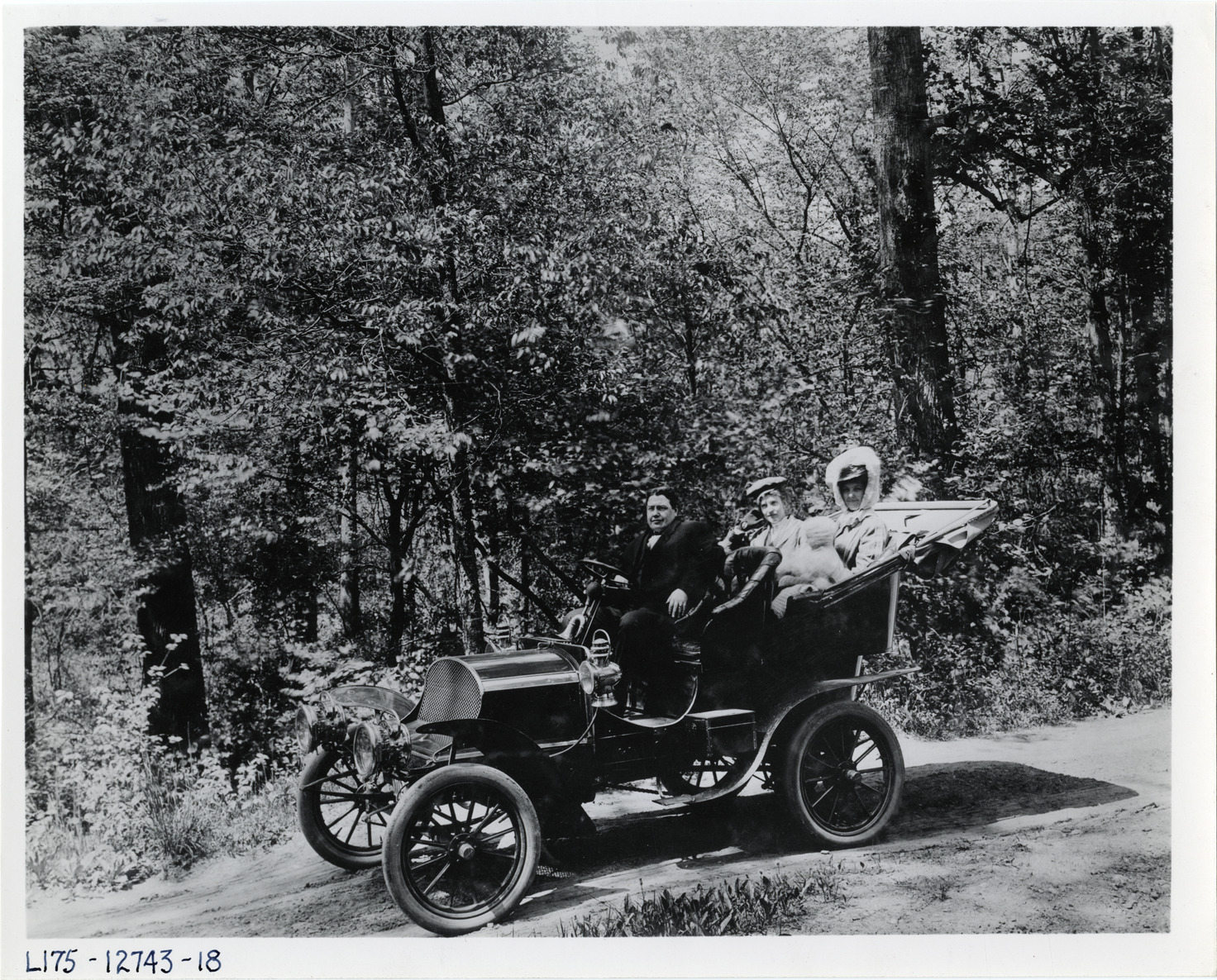 View of man, two women and infant in Franklin car. Handwritten on back: "Franklin."