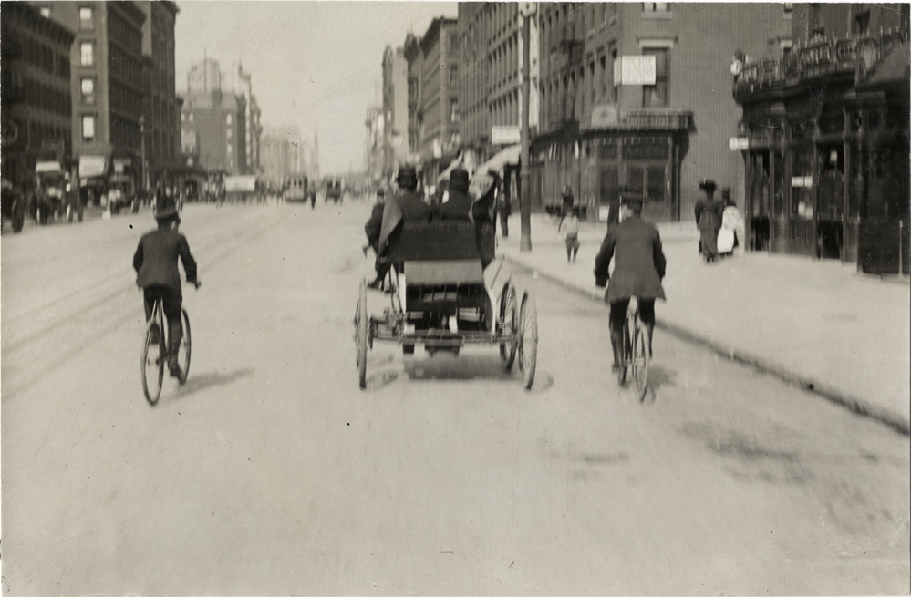 Favorite this☆ Motorists traveling in 1893 Haynes automobile Description: Rear view of motorists in 1893 Haynes car, traveling between two bicyclists. Handwritten on back: "Haynes, 1893." Details Resource ID: na007673 Subject: Haynes automobile Cyclists Photographic prints Date Issued: Unknown year Format: 1 photographic print ; 4.5 x 6.75 in. Member of: National Automotive History Collection Lazarnick Collection Filing Location: Haynes Rights: Physical rights are retained by DPL. Copyright is retained in accordance with U.S. copyright laws.