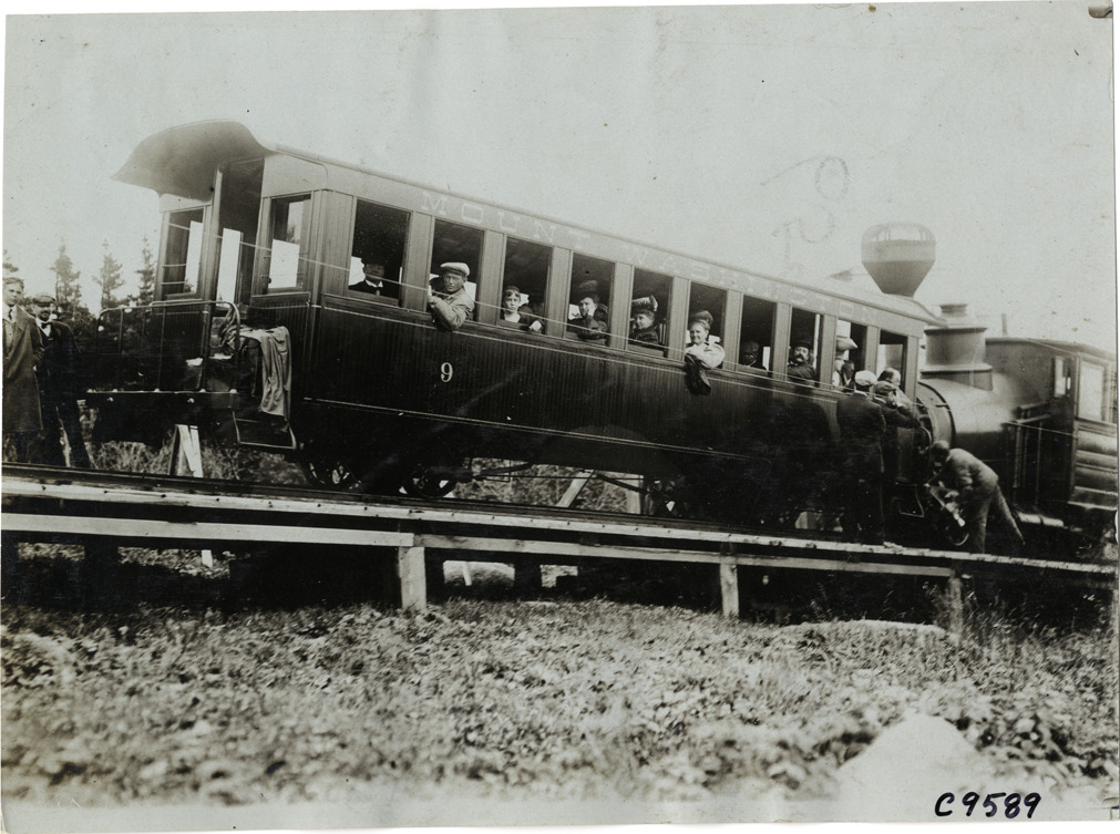 Passengers in railroad car, 1905 Climb to the Clouds Hill Climb