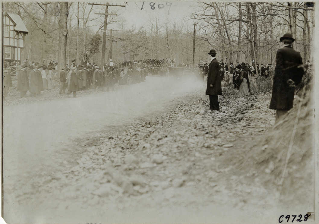 Favorite this☆ Spectators at 1904 Eagle Rock Hill Climb Description: View of spectators on roadside during 1904 Eagle Rock Hill Climb in West Orange, New Jersey. Handwritten on back: "Hill Climbs--Eagle Rock Hill Climb, 1904." Details Resource ID: na007939 Subject: Automobile racing fans--New Jersey--West Orange Hillclimbing (Automobile racing)--New Jersey--West Orange Photographic prints Date Issued: 1904-11 Format: 1 photographic print ; 5 x 7 in. Member of: National Automotive History Collection Lazarnick Collection Filing Location: Hill Climbs--Eagle Rock Hill Climb, 1904 #1 Negative Number: Negative #C9728 Rights: Physical rights are retained by DPL. Copyright is retained in accordance with U.S. copyright laws.
