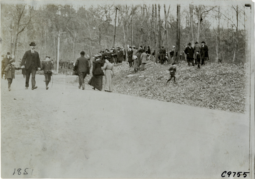 Favorite this☆ Spectators at 1904 Eagle Rock Hill Climb Description: View of spectators at 1904 Eagle Rock Hill Climb in West Orange, New Jersey. Handwritten on back: "Hill Climbs--Eagle Rock Hill Climb, 1904." Details Resource ID: na007962 Subject: Automobile racing fans--New Jersey--West Orange Hillclimbing (Automobile racing)--New Jersey--West Orange Photographic prints Date Issued: 1904-11 Format: 1 photographic print ; 5 x 7 in. Member of: National Automotive History Collection Lazarnick Collection Filing Location: Hill Climbs--Eagle Rock Hill Climb, 1904 #2 Negative Number: Negative #C9755 Rights: Physical rights are retained by DPL. Copyright is retained in accordance with U.S. copyright laws.