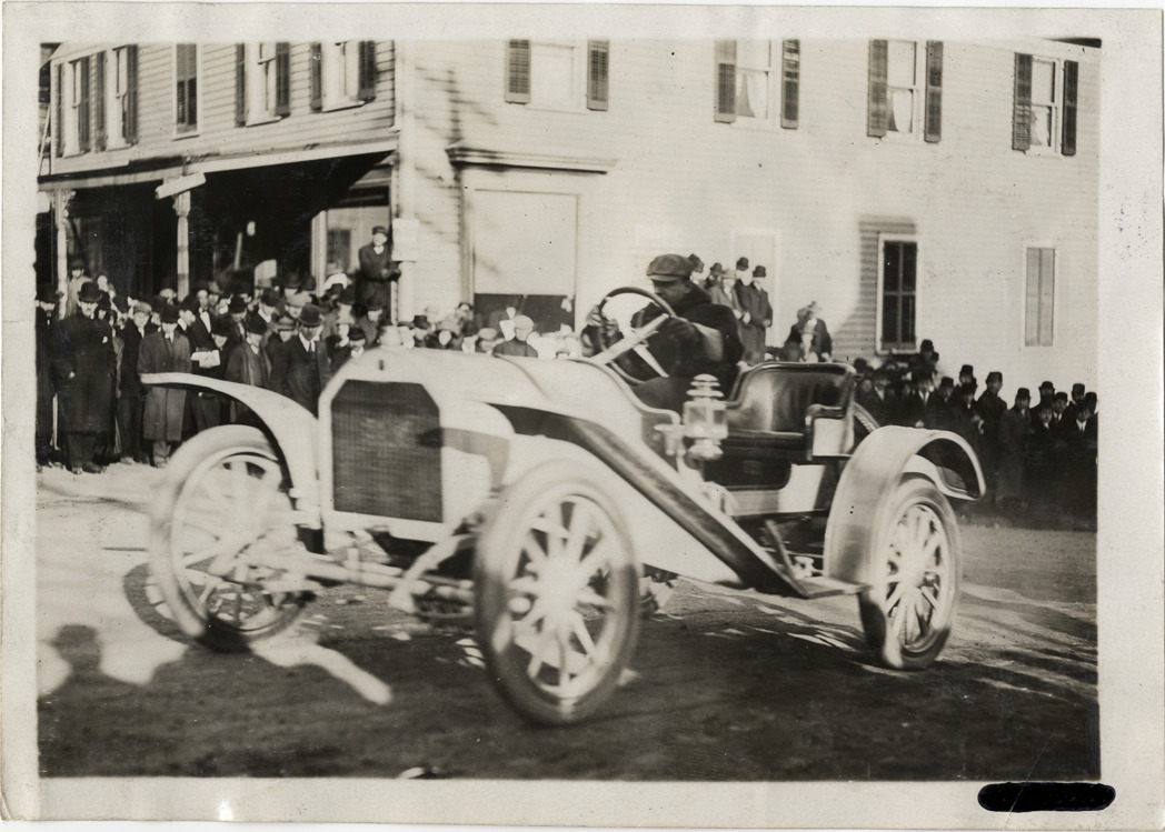 Driver in racecar, 1909 Edgewater-Fort Lee Hill Climb