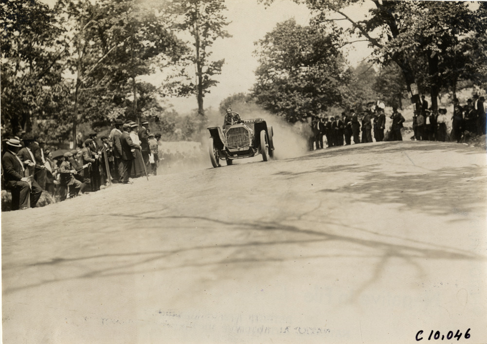 Driver in racecar, 1909 Giant's Despair Hill Climb