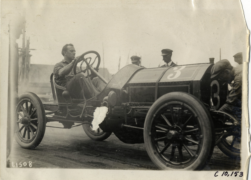 Driver in Knox racecar, 1910 Port Jefferson Hill Climb