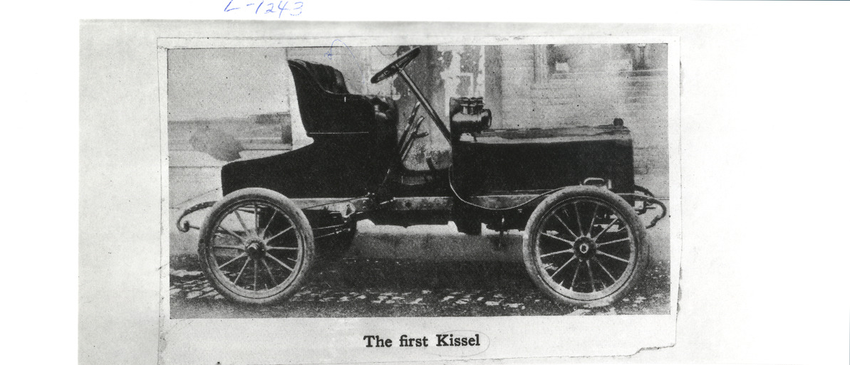 View of first Kissel Kar. Printed on front: "The first Kissel." Handwritten on back: "Kissel."