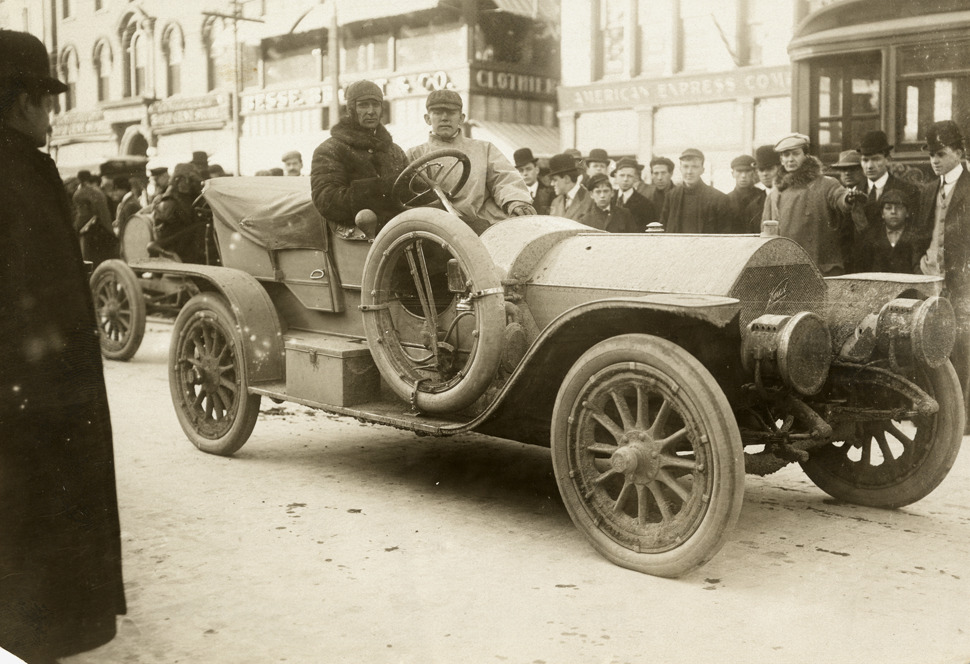 Driver and passenger in Knox racecar, Worcester, Massachusetts