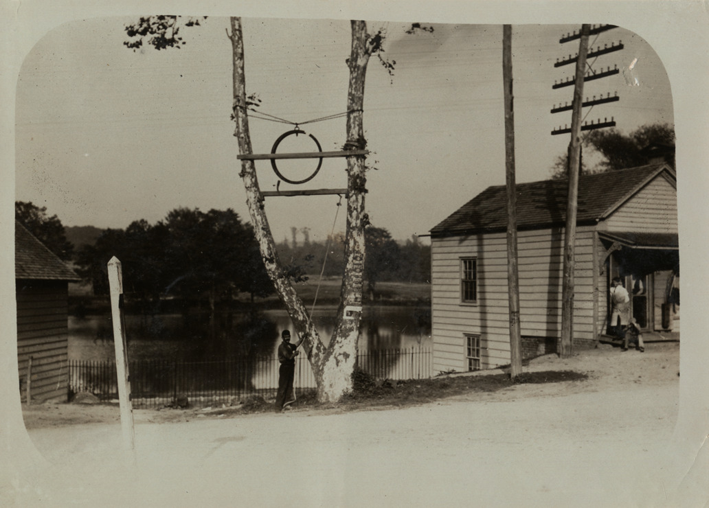 Favorite this☆ Man adjusting rope in tree Description: View of man standing in front of fork of tree, adjusting a rope attached to brace. Wooden-frame building on right; fence and lake in background. Handwritten on back: "Landscapes." Details Resource ID: na008818 Subject: Trees Wooden-frame buildings Photographic prints Date Issued: Unknown year Format: 1 photographic print ; 5 x 7 in. Member of: National Automotive History Collection Lazarnick Collection Filing Location: Landscapes Rights: Physical rights are retained by DPL. Copyright is retained in accordance with U.S. copyright laws.