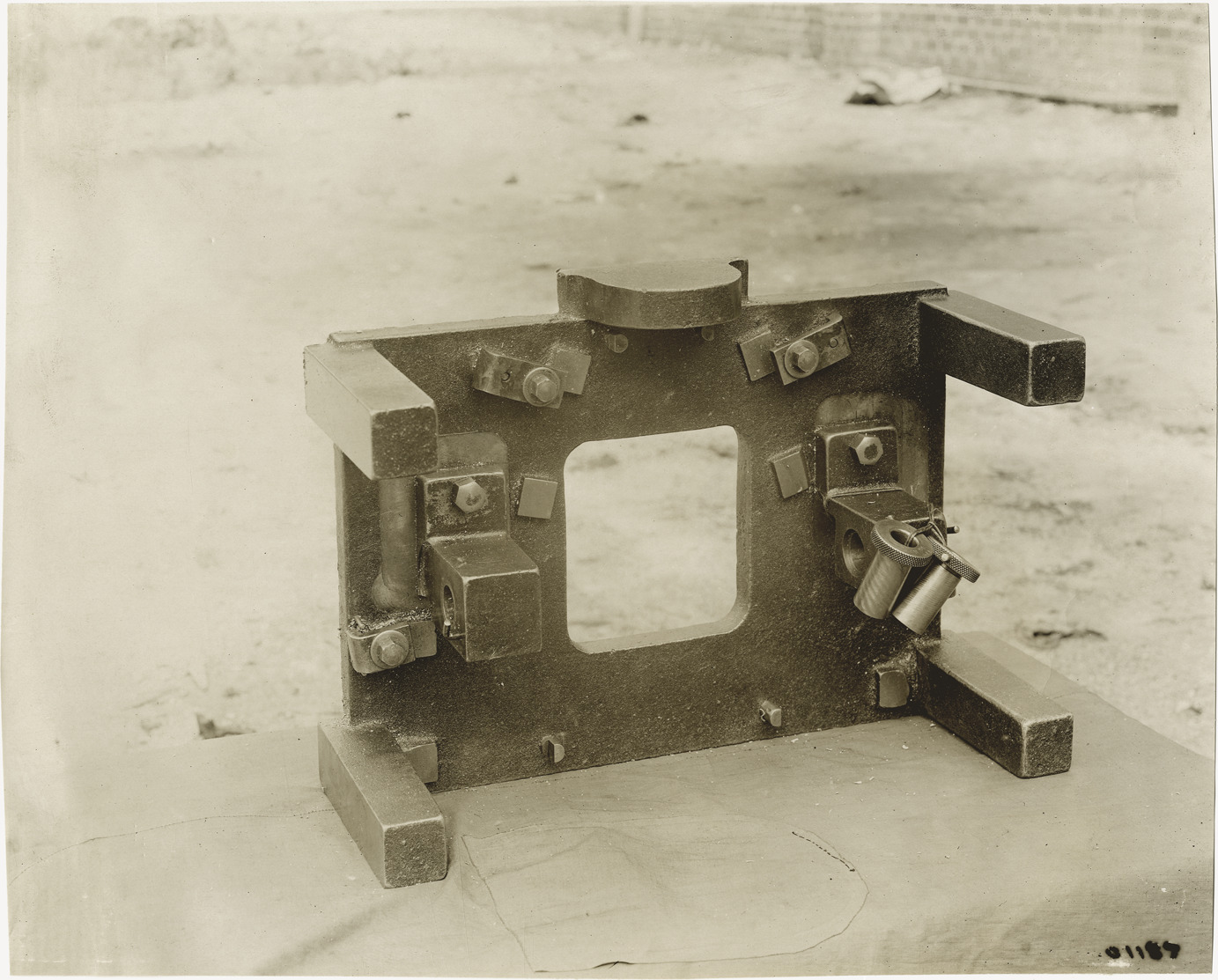 View of unidentified machine part. Stamped on back: "Spooner & Wells, Inc., photographers, telephone North 1745. 1231 Woodward Ave., Detroit, Mich. Detroit, 1231 Woodward, New York, 1931 Broadway." Handwritten on back: "Machinery, 1911."
