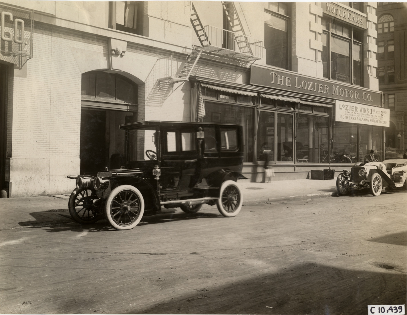 1909 Lozier automobile parked in front of Lozier Motor Company building