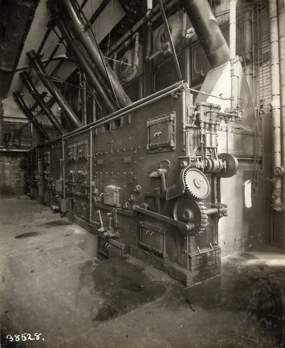 View of furnace in factory. Stamped on back: "Spooner & Wells, Inc., photographers, telephones 3472-3473 Columbus, 1931 Broadway, New York." Handwritten on back: "Machinery, 1911."
