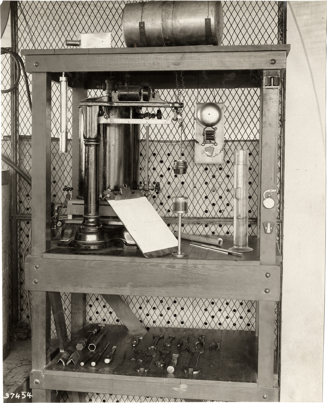 Favorite this☆ Storage unit with tools Description: View of shelves holding assorted hand tools, clipboard, beaker, slide rule and alarm bell. Handwritten on back: "Machinery, 1910." Details Resource ID: na008953 Subject: Shelving (Furniture) Tools Photographic prints Date Issued: 1910 Format: 1 photographic print ; 9.5 x 7.75 in. Member of: National Automotive History Collection Lazarnick Collection Filing Location: Machinery #2 Rights: Physical rights are retained by DPL. Copyright is retained in accordance with U.S. copyright laws.