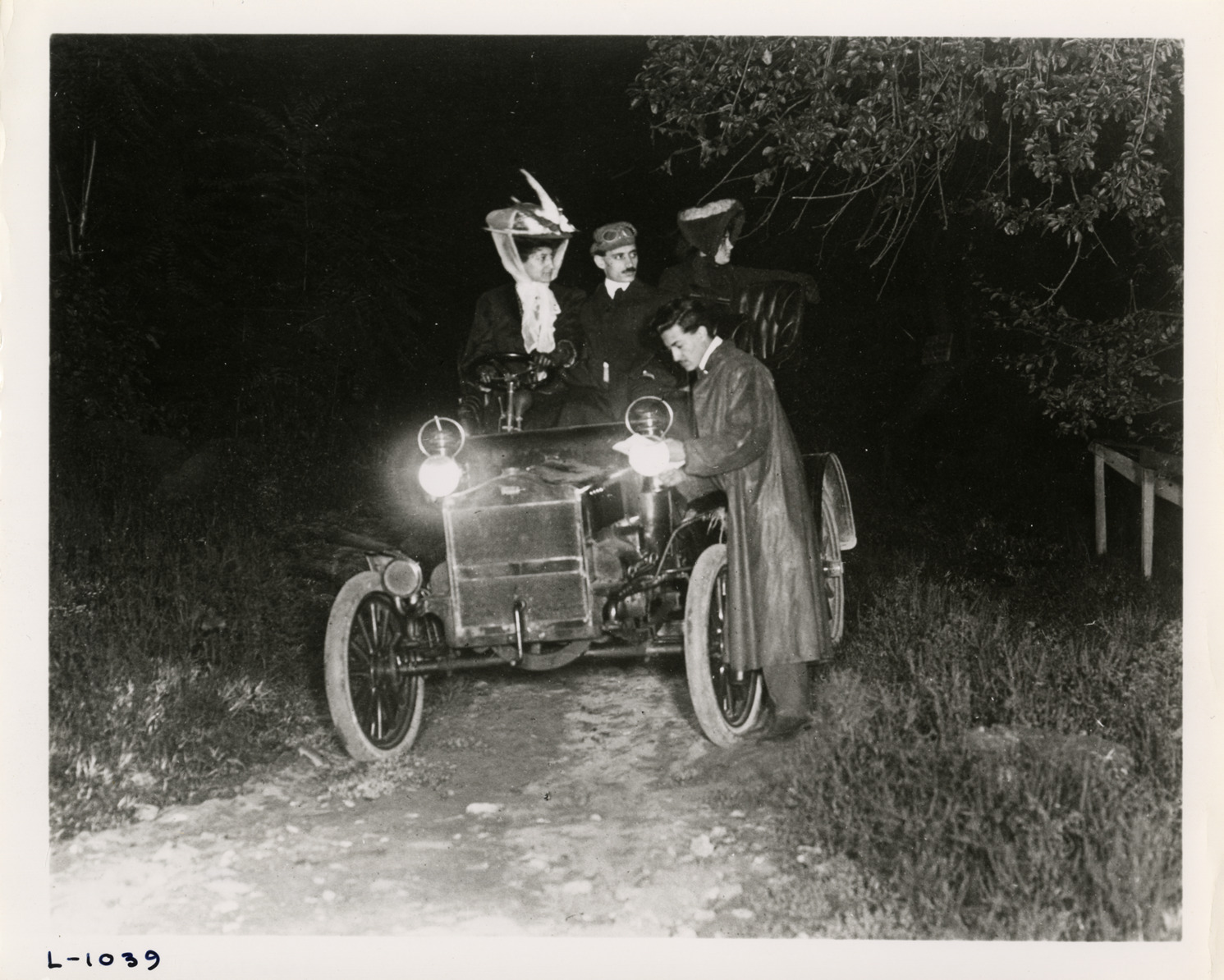Favorite this☆ Motorists in Maxwell automobile at night Description: Nighttime view of motorists in Maxwell car; man standing in front of car cleans headlight. Handwritten on back: "Maxwell." Details Resource ID: na009037 Subject: Automobiles Maxwell-Briscoe Motor Company Photographic prints Date Issued: Unknown year Format: 1 photographic print ; 8 x 10 in. Member of: National Automotive History Collection Lazarnick Collection Filing Location: Maxwell #2 Rights: Physical rights are retained by DPL. Copyright is retained in accordance with U.S. copyright laws.
