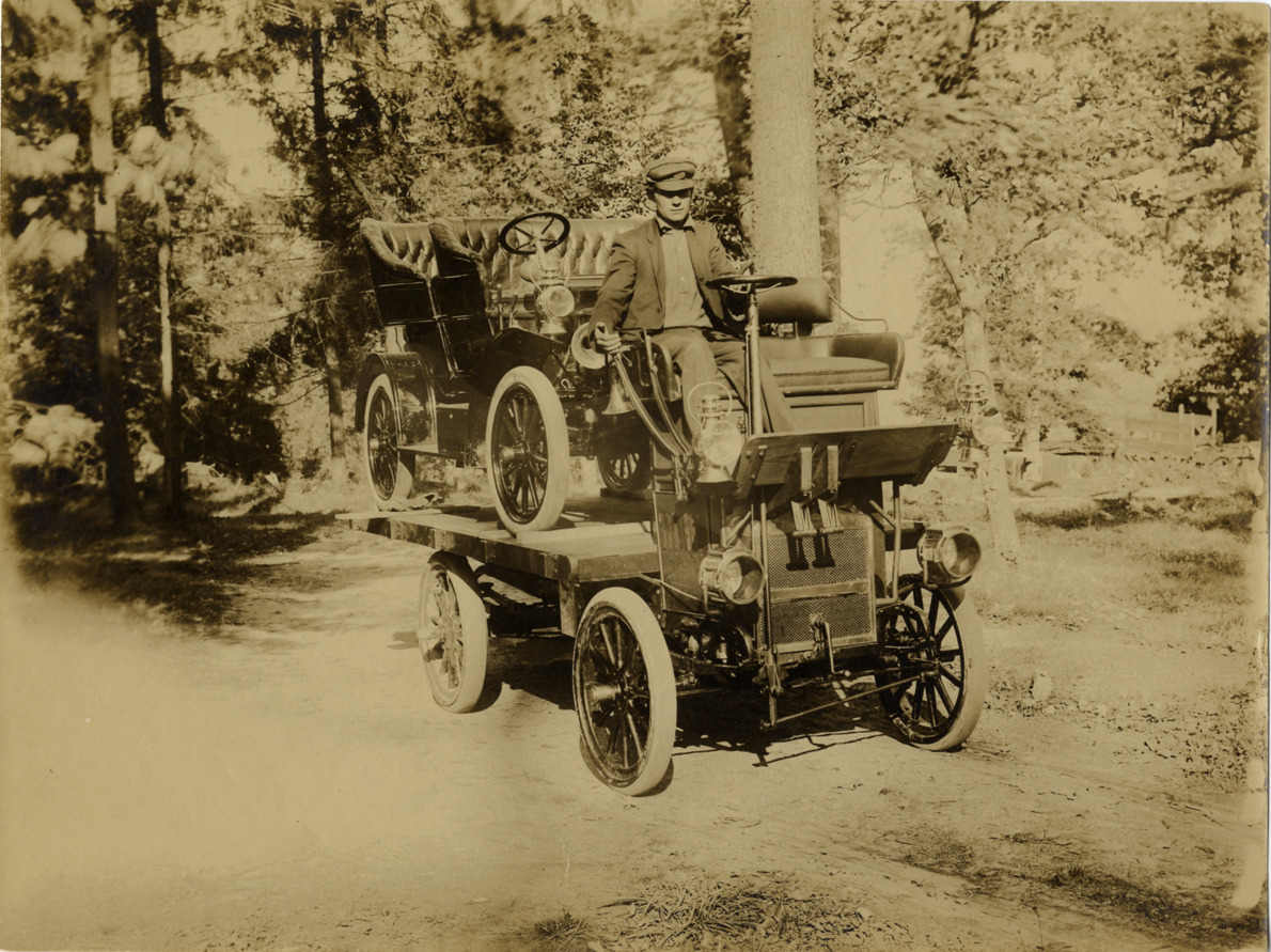 Favorite this☆ 1906 Maxwell automobile on tow truck Description: View of man driving tow truck that holds 1906 Maxwell car. Stamped on back: "Photo by N. Lazarnick, 29 West 42nd Street, New York." Handwritten on back: "Maxwell, 1906." Details Resource ID: na009092 Creator: Lazarnick, Nathan Subject: Automobiles--Towing Maxwell-Briscoe Motor Company Wreckers (Vehicles) Photographers--New York (State)--New York Photographic prints Date Issued: Unknown year Format: 1 photographic print ; 6 x 8 in. Member of: National Automotive History Collection Lazarnick Collection Filing Location: Maxwell #3 Rights: Physical rights are retained by DPL. Copyright is retained in accordance with U.S. copyright laws.