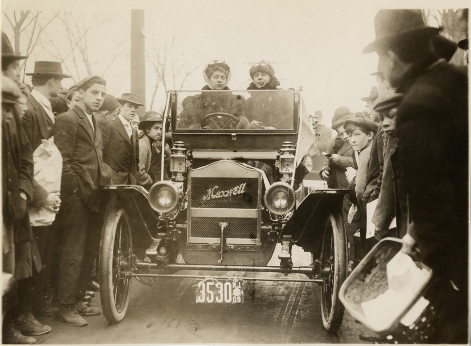Favorite this☆ Couple in 1909 Maxwell automobile Description: Front view of woman and man in 1909 Maxwell car, surrounded by crowd. Stamped on back: "Photo by N. Lazarnick, 29 West 42nd Street, N.Y., tel. 594 Bryant." Handwritten on back: "Maxwell, 1909." Details Resource ID: na009112 Creator: Lazarnick, Nathan Subject: Automobiles Maxwell-Briscoe Motor Company Women automobile drivers Photographers--New York (State)--New York Photographic prints Date Issued: Unknown year Format: 1 photographic print ; 4.75 x 6.5 in. Member of: National Automotive History Collection Lazarnick Collection Filing Location: Maxwell #3 Rights: Physical rights are retained by DPL. Copyright is retained in accordance with U.S. copyright laws.