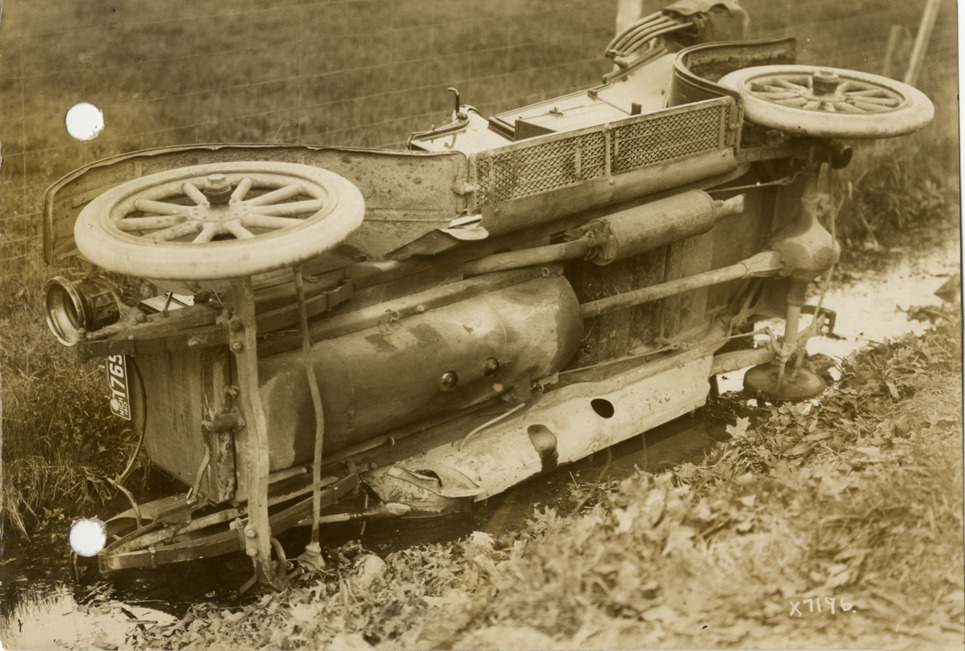 Favorite this☆ Overturned 1913 Maxwell automobile Description: View of overturned 1913 Maxwell car. Handwritten on back: "Maxwell, 1913. Maxwell car." Details Resource ID: na009124 Subject: Automobiles Maxwell Motor Company Traffic accidents Photographic prints Date Issued: 1913 Format: 1 photographic print ; 4.5 x 6.5 in. Member of: National Automotive History Collection Lazarnick Collection Filing Location: Maxwell #3 Rights: Physical rights are retained by DPL. Copyright is retained in accordance with U.S. copyright laws.