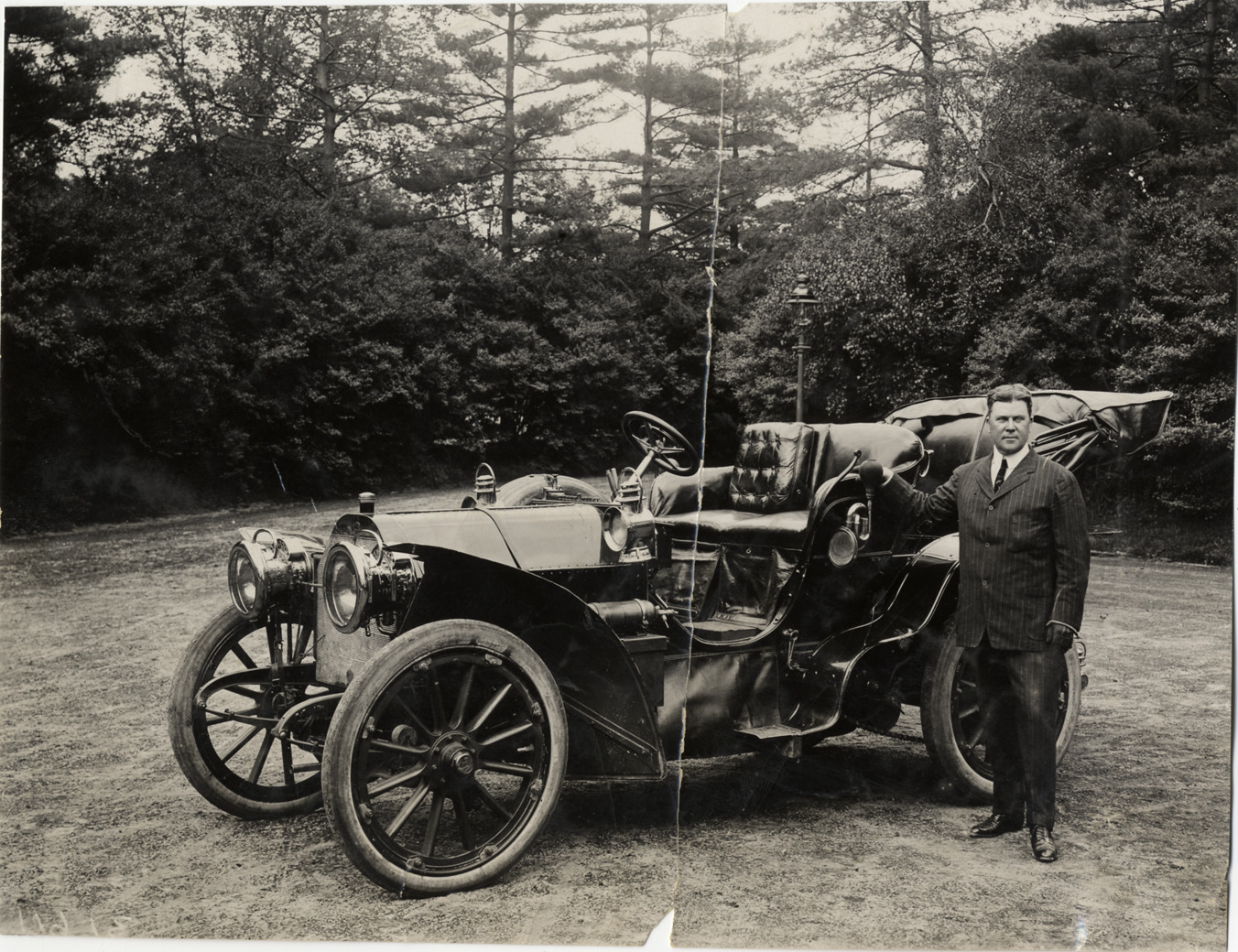 Favorite this☆ Man posing with 1908 Mercedes automobile Description: View of man posing with 1908 Mercedes car. Handwritten on back: "Mercedes, 1908." Details Resource ID: na009140 Subject: Mercedes automobiles Photographic prints Date Issued: Unknown year Format: 1 photographic print ; 7 x 9 in. Member of: National Automotive History Collection Lazarnick Collection Filing Location: Mercedes Rights: Physical rights are retained by DPL. Copyright is retained in accordance with U.S. copyright laws.