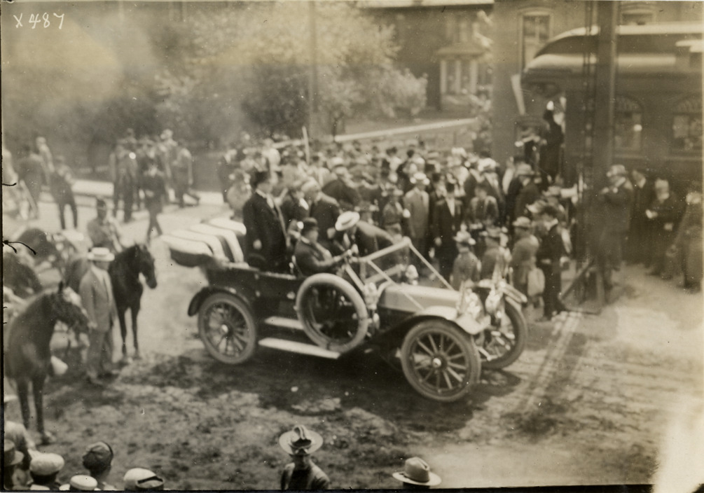 President Taft in automobile near train station, Custer memorial celebration