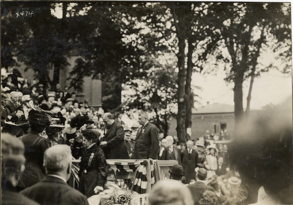 President William H. Taft and Libbie Custer during ceremonies, Custer memorial celebration