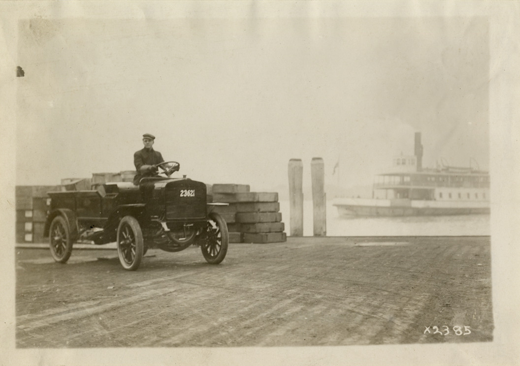 Favorite this☆ Man driving 1910 Alden Sampson truck on dock Description: View of man driving 1910 Alden Sampson truck on dock; ferry in background. Handwritten on back: "Motor trucks--Alden Sampson, 1910." Details Resource ID: na009236 Subject: Trucks Alden Sampson Manufacturing Company Ferries Photographic prints Date Issued: Unknown year Format: 1 photographic print ; 5 x 7.25 in. Member of: National Automotive History Collection Lazarnick Collection Filing Location: Motor trucks--Alden Sampson Rights: Physical rights are retained by DPL. Copyright is retained in accordance with U.S. copyright laws.