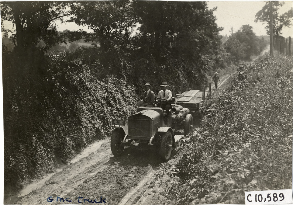 Favorite this☆ Driver and passenger in 1917 GMC truck on rural road Description: View of driver and passenger in 1917 GMC truck pulling trailer on rural road. Handwritten on front: "GMC truck." Handwritten on back: "Motor trucks--GMC, 1917." Details Resource ID: na009354 Subject: Trucks General Motors Truck Company Truck trailers Rural roads Photographic prints Date Issued: 1917 Format: 1 photographic print ; 4.5 x 6.5 in. Member of: National Automotive History Collection Lazarnick Collection Filing Location: Motor trucks--GMC Negative Number: Negative #C10,589 Rights: Physical rights are retained by DPL. Copyright is retained in accordance with U.S. copyright laws.