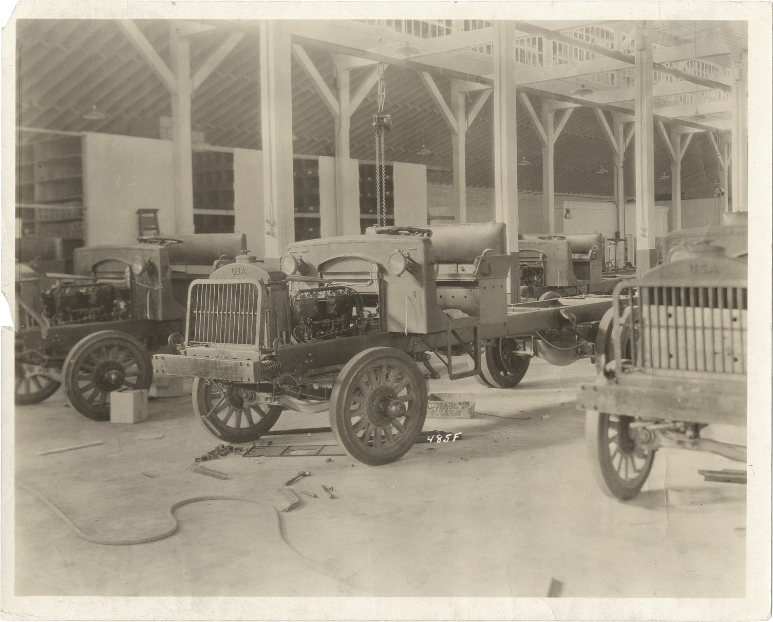 Favorite this☆ Gramm-Bernstein trucks in factory Description: View of Gramm-Bernstein trucks being assembled in Gramm-Bernstein Motor Truck Company factory. Stamped on back: "The Gramm-Bernstein Motor Truck Co., Lima, Ohio." Handwritten on back: "Motor trucks--Gramm-Bernstein. 3rd operation." Details Resource ID: na009406 Subject: Trucks--Design and construction Gramm-Bernstein Motor Truck Company Automobile factories--Ohio--Lima Photographic prints Date Issued: Unknown year Format: 1 photographic print ; 8 x 10 in. Member of: National Automotive History Collection Lazarnick Collection Filing Location: Motor trucks--Gramm-Bernstein Rights: Physical rights are retained by DPL. Copyright is retained in accordance with U.S. copyright laws.