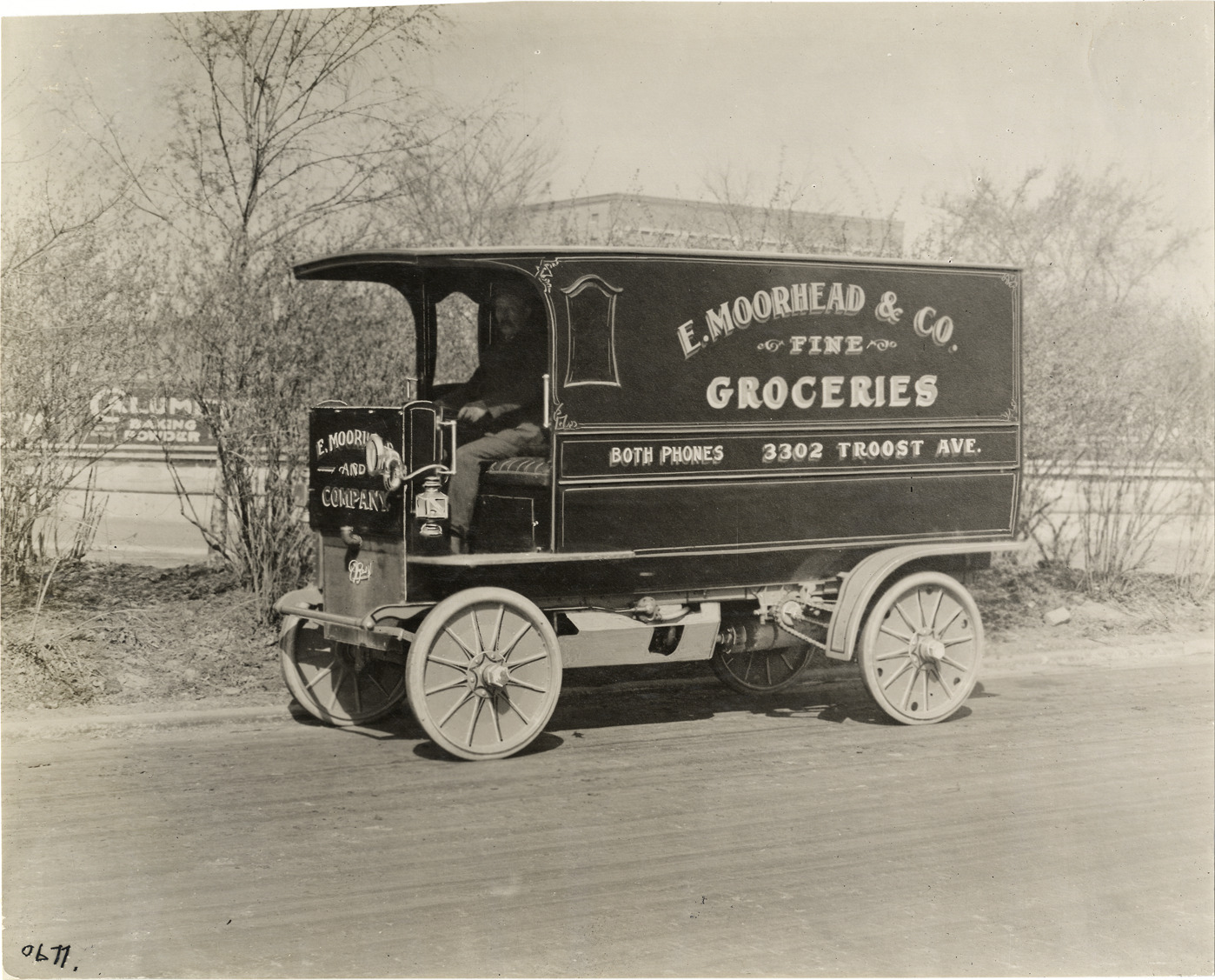Favorite this☆ Driver in 1910 Rapid truck, E. Moorhead & Company Description: View of driver in 1910 Rapid truck owned by E. Moorhead & Company. "E. Moorhead & Co., fine groceries, both phones, 3302 Troost Ave." painted on side of truck. Handwritten on back: "Motor trucks--Rapid, 1910." Details Resource ID: na009545 Subject: Trucks Rapid Motor Vehicle Company Groceries--Transportation Photographic prints Date Issued: Unknown year Format: 1 photographic print ; 7.5 x 9.5 in. Member of: National Automotive History Collection Lazarnick Collection Filing Location: Motor trucks--Rapid #2 Rights: Physical rights are retained by DPL. Copyright is retained in accordance with U.S. copyright laws.