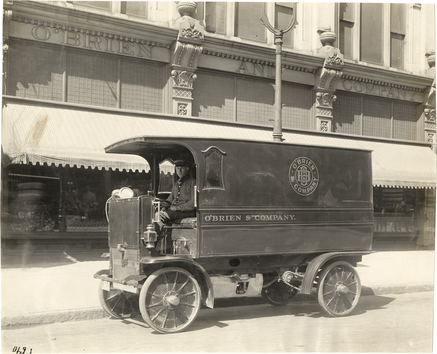Favorite this☆ Driver in 1910 Rapid Truck, O'Brien & Company Description: View of driver in 1910 Rapid truck owned by O'Brien & Company, parked in front of O'Brien & Company building. Handwritten on back: "Motor trucks--Rapid, 1910." Details Resource ID: na009567 Subject: Trucks Rapid Motor Vehicle Company Photographic prints Date Issued: Unknown year Format: 1 photographic print ; 7.75 x 9.5 in. Member of: National Automotive History Collection Lazarnick Collection Filing Location: Motor trucks--Rapid #3 Rights: Physical rights are retained by DPL. Copyright is retained in accordance with U.S. copyright laws.